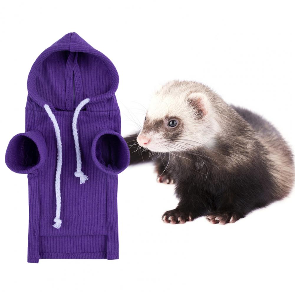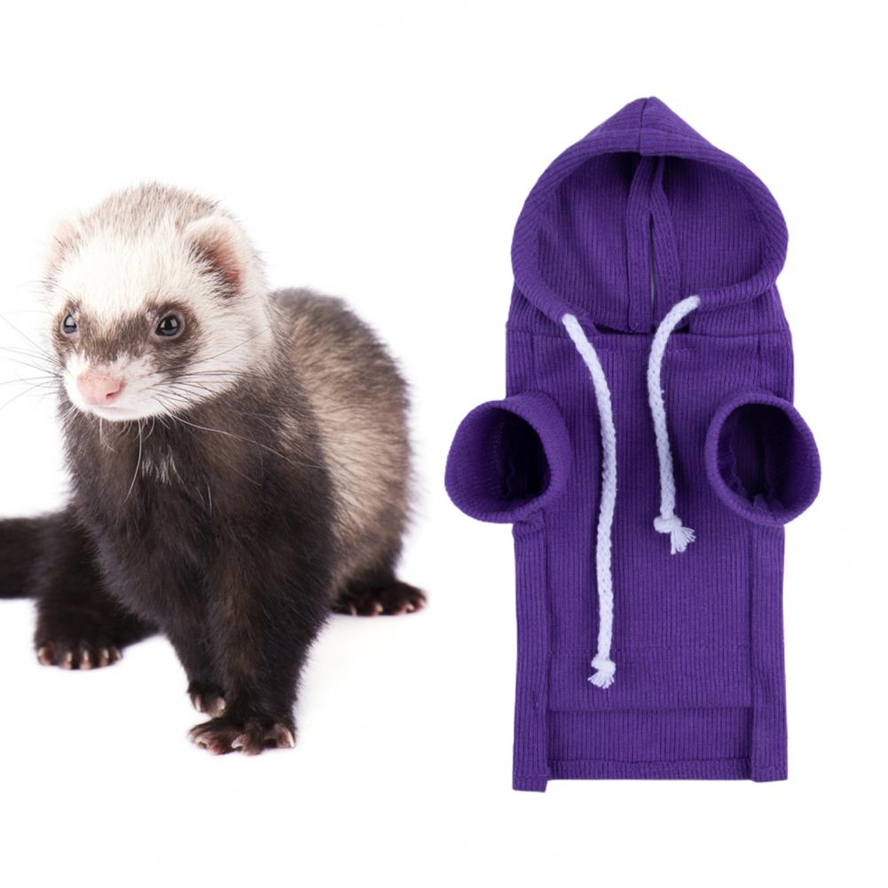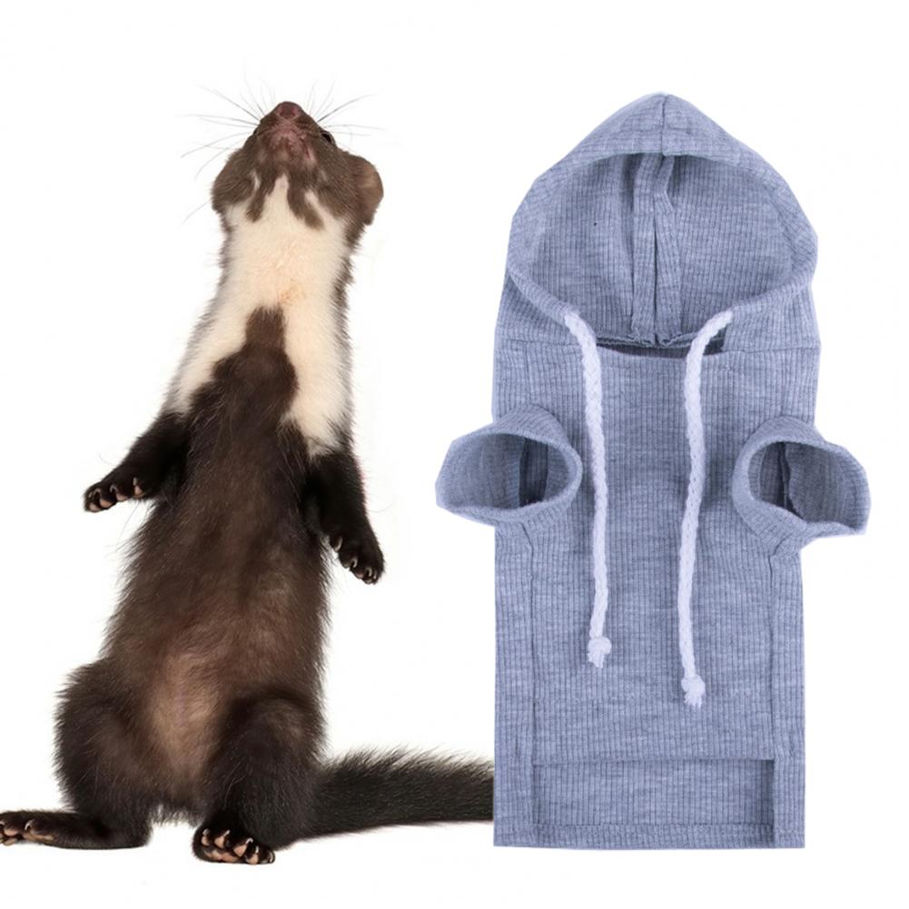 Cute Ferret Hoodie Solid Color Drawstring Hooded Sweatshirt Thick Fluffy Pet Hoodie Foreleg Elastic Hamster Guinea Clothes
